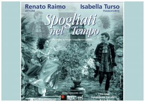 “Spogliati nel Tempo” è uno spettacolo letterario – musicale condotto da Renato Raimo, attore, e Isabella Turso al pianoforte. I due artisti hanno congiunto la propria competenza e sensibilità artistica per realizzare uno spettacolo letterario musicale in cui l’amore viene raccontato attraverso le lettere dei grandi personaggi del passato, in una dimensione onirica dove sogno, fantasia e realtà talvolta si confondono. Renato Raimo ed il suo affascinante viaggio di parole e stati d’animo intrisi di inchiostro rosso passione, rivelano profondità e leggerezze dell’universale quanto nascosto epistolario d’Amore. Isabella Turso e il suo pianoforte definiscono, sottolineano, tratteggiano l’atmosfera intima e seducente dello spettacolo, in un caleidoscopio di musiche dei grandi classici del passato e di brani originali da lei composti ed interpretati.
