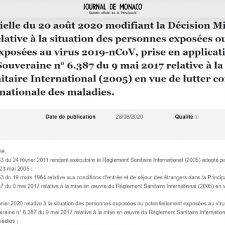 Pubblicata sull’edizione N°8501 del Journal de Monaco, la decisione ministeriale del 20 agosto 2020 stabilisce le nuove regole per chi...