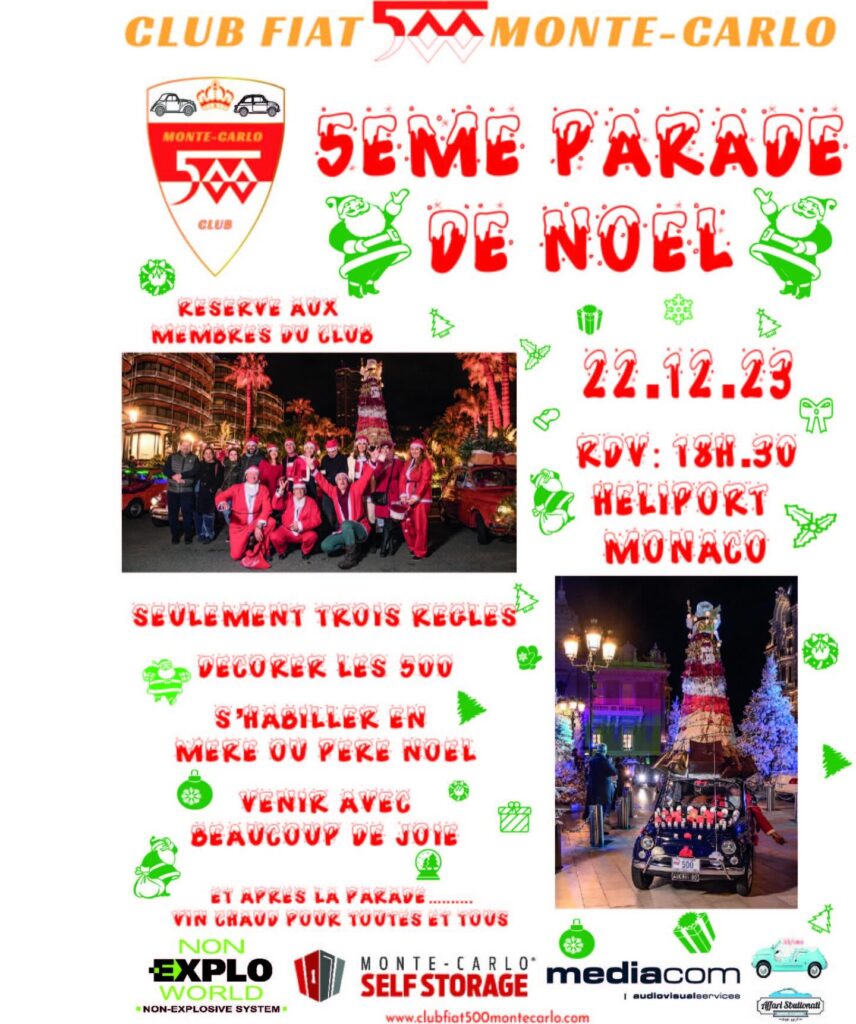 E’ scattata la giornata più attesa dell’anno per gli iscritti al CLUB FIAT 500 MONTE-CARLO che oggi, 22 dicembre a partire dalle 18h30, sono invitati a partecipare alla 5ª edizione della “PARADE DE NOEL”