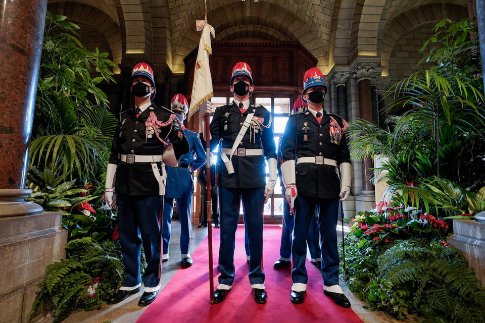 Le immagini di questa giornata sono state trasmesse in diretta da Monaco Info per chi non ha mancato l’appuntamento, almeno virtualmente. Alla presa d’armi e successiva consegna delle medaglie alle forse dell’ordine ed ai Carabinieri del Principe il cui corpo celebrava quest’anno i 150 anni dall’arrivo delle guardie Papaline, all’interno della Corte d’onore del Palazzo, non hanno assistito la Principessa Stéphanie, le due figlie Pauline e Camille, e nemmeno Charlotte Casiraghi ed il marito, Dimitri Rassam.