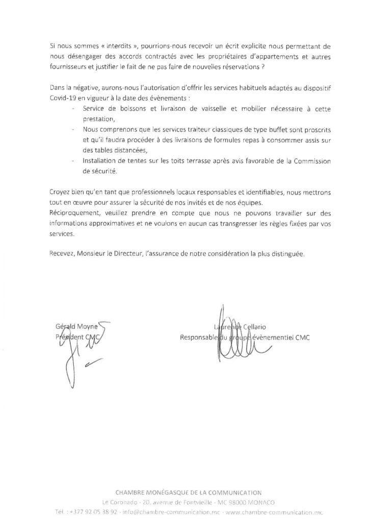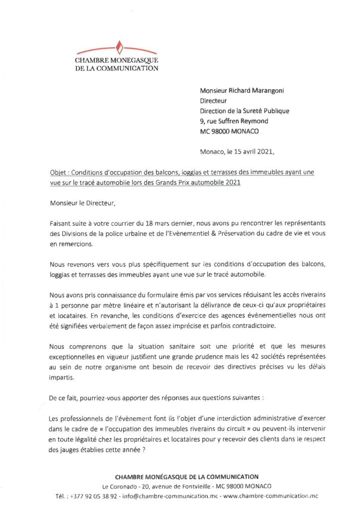 Insomma, l’emergenza sanitaria che vincola ogni spostamento in Francia fino al 1° giugno 2021 per impedire ulteriormente la diffusione della pandemia dovuta al coronavirus, sta giocando brutti scherzi al ligio Principato di Monaco che già si è compromesso il Rolex Monte Carlo Masters svoltosi a porte chiuse. E’ ora, infatti, incombe l’atteso Gran Premio Storico di Monaco che, secondo quanto comunicato dal Governo, nel corso di una conferenza stampa virtuale (come abbiamo indicato nel nostro articolo accessibile cliccando qui) si svolgerà ma solo a determinate condizioni. Intanto il pubblico: decisa la capienza massima (6500 persone, un terzo di quello atteso) ad assistere alle gare di qualifica di sabato e la competizione di domenica possono essere solo i residenti, i lavoratori impiegati a Monaco e coloro che soggiornano in hotel. Tecnicamente, a parte l’assembramento assicurato (ma si tratta comunque di stare all’aperto), nulla dovrebbe cambiare a livello di circolazione del virus, visto che non sono previsti arrivi di persone non testate. Inoltre, per non gravare sul bilancio dell’Automobile Club di Monaco, è stato deciso di non far lavorare del personale supplementare impiegato per indirizzare ed assistere i tifosi alle gradinate. Questo, pare, sia il motivo addotto per consentire alle prove di venerdì di svolgersi in assenza di pubblico. Tuttavia, l’inquietudine del settore legato all’intrattenimento durante i prossimi eventi che si svolgeranno sul circuito cittadino (il GP elettrico e quello classico di Formula 1) non si placa giacché ancora non è dato sapere se è possibile organizzare ricevimenti sui terrazzi o sulle barche, attività queste che generano diverse centinaia di migliaia di euro in termini di fatturato e gettito Iva. A farsi portavoce di queste istanze la Camera della Comunicazione ( e degli eventi) che raccoglie 42 iscritti in seno alla FEDEM, diventando il sesto gruppo d’interesse merceologico più importante delle altre entità comprese nella federazione stessa. Infatti, nel corso della consueta assemblea generale svoltasi la settimana scorsa, i membri presenti hanno manifestato le loro perplessità in merito alle difficili condizioni di lavoro che rischiano di compromettere non solo reputazione ma anche la ‘salute’ delle aziende interessate, impossibilitate a lavorare correttamente in mancanza di un regolamento preciso, adattato all’emergenza della Covid19. In questo senso il direttivo ha deciso di indirizzare una lettera agli organi competenti di Monaco scrivendo direttamente al capo della Sicurezza Pubblica ma, ahimè, ancora nessuno si è manifestato