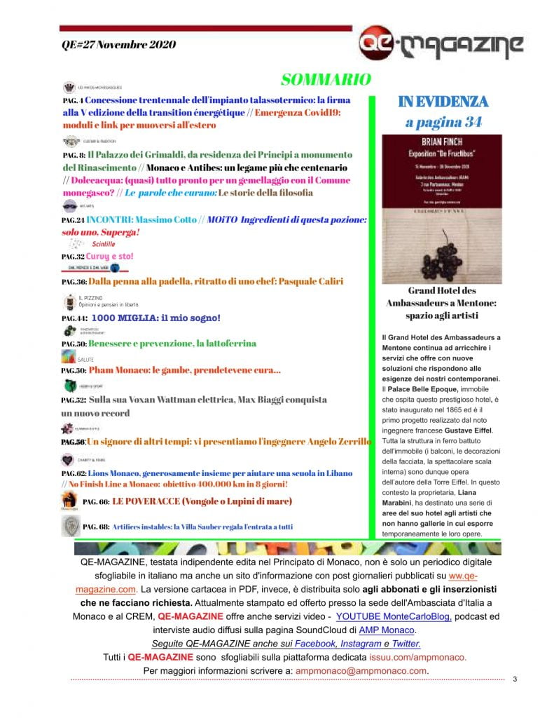 QE-MAGAZINE è il primo ed unico settimanale – ed ora mensile – digitale in italiano del Principato di Monaco Facebook, Instagram e Twitter) che propone anche una versione stampabile del magazine digitale ESCLUSIVAMENTE agli abbonati che ne facciano richiesta. Da seguire anche i video del canale YOUTUBE MonteCarloBlog