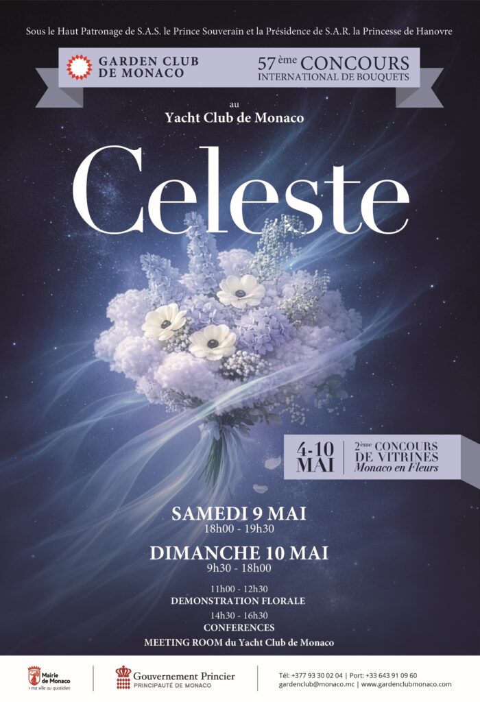 La manifestazione prevede il coinvolgimento diretto del tessuto commerciale monegasco, con ben diciannove boutique che parteciperanno al concorso di vetrine allestendo composizioni floreali che i passanti potranno seguire attraverso la mappa “La route des fleurs”, un itinerario pensato per valorizzare insieme l’arte floreale e il commercio locale. Il momento centrale della settimana è atteso per il 9 e 10 maggio, quando lo Yacht Club de Monaco accoglierà il Concours International de Bouquets. Le composizioni in concorso e quelle premiate saranno esposte gratuitamente al pubblico, in un format che unisce competizione e accessibilità. Il programma di domenica prevede conferenze e dimostrazioni pratiche su temi che spaziano dalla floricoltura alla coltivazione del bonsai, con una sessione dedicata al rapporto tra arte visiva e composizione floreale. Il Garden Club di Monaco è guidato nella sua attività operativa dalla vice presidente Cecilia Casiraghi, affiancata da S.A.R. la Principessa di Hannover in qualità di presidente onoraria. Giunto alla 57ª edizione, il concorso internazionale si è affermato come uno degli appuntamenti di riferimento nel settore a livello europeo, con la partecipazione di compositori floreali provenienti da più paesi. L’ingresso alle esposizioni è gratuito. Il programma, il cui tema è ‘celeste’ – ma non solo inteso come colore – prevede: