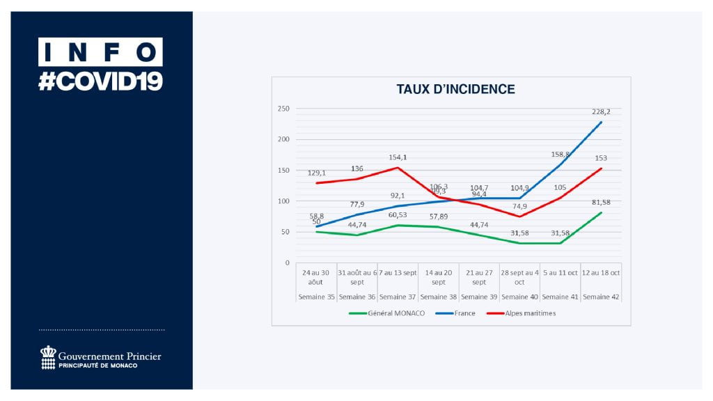Per quanto la situazione a Monaco sia meno preoccupante che altrove, anche il Governo del Principato ha dovuto adottare misure più severe per arginare la possibilità di una maggior diffusione del coronavirus tra i suoi abitanti . “Alcune cifre specifiche lo dimostrano – spiega il Ministro di Stato Dartout – Vediamo il tasso di incidenza, cioè il numero di persone infettate in un periodo di 7 giorni ridotto a 100.000 abitanti: si tratta di un indicatore utilizzato in tutti i paesi del mondo. Il dipartimento francese a noi vicino registra 153 contaminazioni ogni 100.000 abitanti, la Francia nel suo complesso è a 251,5. Questo è ciò che ha giustificato le misure di coprifuoco nella regione confinante. A Monaco, siamo a 81,58. Ecco perché, se il coprifuoco è giustificato in Francia, non lo è, per il momento, a Monaco. Ciò che è preoccupante, tuttavia, è che il tasso di incidenza è raddoppiato in una settimana.” Vigilanti ma meno rigidi dunque, nel Principato di Monaco che, attraverso il suo Governo, non applica il coprifuoco dalle 21h00 alle 6 del mattino ma limita alcune attività, su indicazione del Principe e di concerto con il Consiglio Nazionale, perché il “nostro obiettivo è quello di rimanere pragmatici e flessibili. Se la situazione sanitaria dovesse peggiorare – sottolinea Dartout – potremmo dover adottare misure più severe. Ma vogliamo evitarlo il più possibile per mantenere un equilibrio tra la tutela della salute e l’attività economica essenziale per il nostro lavoro e la nostra prosperità”. Ecco qui di seguito le misure adottate applicabili a partire da questo sabato 24 ottobre fino al 1° dicembre prossimo: