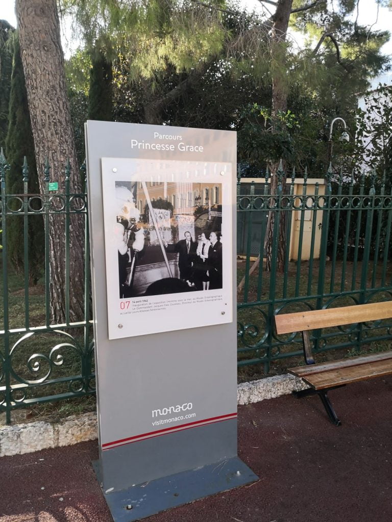L’idea, secondo noi, era vincente! Inizialmente composto da 25 tappe sparse su un tragitto di circa 5,5 km esteso in tutta la città, chi decideva di percorrerlo era invitato a seguire una originale narrazione centrata sia sui principali luoghi da visitare del Principato che sulla mitica figura della Principessa Grace di Monaco, immortalata dal suo arrivo nel Principato (1956) fino all’inaugurazione del teatro a lei intitolato (1981). Questa iniziativa faceva parte di un progetto ‘digitale’ ante litteram, lanciato nel 2007 in occasione della mostra ‘Les Années Grace Kelly, Princesse de Monaco’ organizzata al Grimaldi Forum, una esposizione che riscosse un tale successo da diventare itinerante nel mondo. L’anno successivo, nel 2008, il tragitto fu perfezionato attraverso il ricorso ad una tecnologia all’epoca innovativa, ora inserita in quasi tutti i device, nota come NFC: bastava poggiare lo smartphone ad uno dei totem che troneggiava in città e immediatamente si poteva leggere la storia narrata in quel punto esatto. Il Percours Principesse Grace, nonostante non sia più strutturato per connettersi a questa tecnologia utilizzata oggi, per esempio, per pagare direttamente dal proprio telefonino, in qualche modo continua ad ammaliare il turista che mentre ammira le foto esposte verticalmente, leggendo le brevi diciture di spiegazione, riesce a percepisce ancora la presenza dell’iconica moglie del Principe Ranieri III. Del resto Grace di Monaco, se non fosse scomparsa il 14 settembre del 1982 a seguito del tragico incidente stradale, avrebbe festeggiato il suo 91° compleanno.