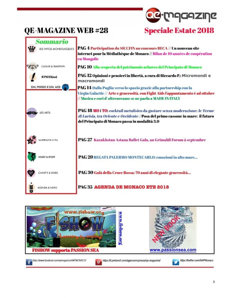 Con l’estensione sul mare, come immagino sappiate, si recupereranno 6000 metri quadrati di spazi destinati non solo ad aree verdi ma soprattutto a palazzine e villette superlussuose, dotate di confort ma soprattutto di tranquillità, visto che su questi viali non è stato previsto nessun transito di auto, relegate in altrettanti eleganti parcheggi sottomarini. Altro che modifica del tracciato della Formula 1 monegasca, ventilata tempo fa da qualche testata internazionale. Monaco accoglie da centinaia di anni molte nazionalità diverse e questa sua internazionalizzazione si concretizza soprattutto in eventi di caratteri mondani. Quello che si è appena svolto, il 70° Galà della Croce Rossa – – > cliccare su https://www.youtube.com/watch?v=CcqfTMEmPH4 per vedere il video <– , che raccontiamo nelle nostre pagine, è l’espressione di questo aspetto capace di modulare il glamour con l’esigenze delle nuove generazioni che, non a caso, affollano la sala dello Sporting, anche per assistere ai concerti dei loro beniamini, in un atmosfera intimista e quasi esclusiva. Credo, in fondo, che quello che rende speciale questo Principato è rendere accessibile quello che in altri posti è quasi impossibile. E chi ci vive sa bene di che cosa parlo: non solo eventi ma anche attività culturali ed artistici sono spesso delle unicità che non trovano pari altrove. Per questo, cari lettori, v’invitiamo a leggere e sfogliare il nostro QE-MEGAZINE SPECIALE ESTATE 2018: potrete accedere alle informazioni direttamente, cliccando sui link messi a disposizione per voi. Allora, in attesa di ritrovarci il 23 settembre con il nostro settimanale #29, auguriamo a tutti una splendida estate!