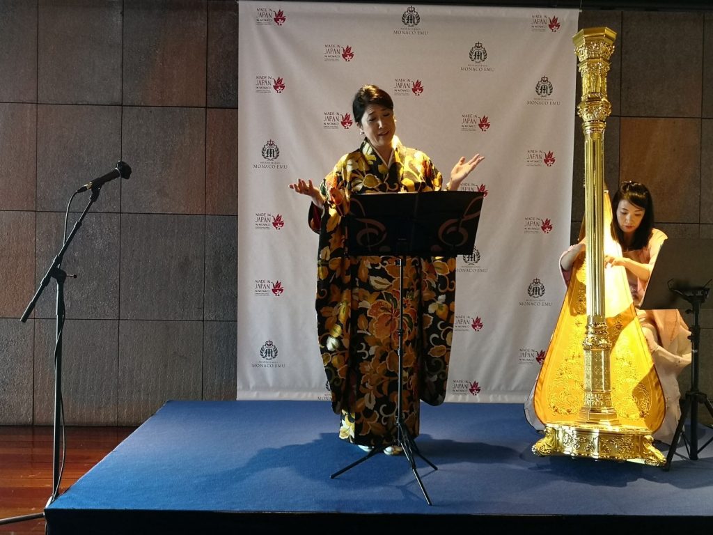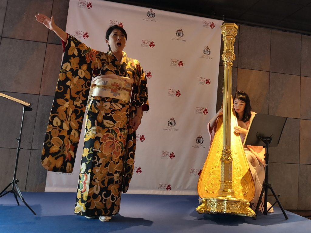 A parte le dimostrazione del Dojo Kendo IAIDO Monaco, che si svolge alle 11h30, la perla di questa manifestazione è, secondo noi, il concerto dell’Ensemble Iris, formato dal Soprano YUKAKO CUSTO-HIRAMORI e MUTSUKO CUGLIETTA-UEMATSU all’arpa. Sono loro che, con tutta la grazia tipica delle donne giapponesi, riescono ad ipnotizzare il pubblico presente a partire dalle 15h30, eseguendo brani della tradizione giapponese e di musica classica di rara bellezza ed eleganza. Le due artiste poi, presentano anche un estratto del loro ultimo CD, in vendita direttamente presso l’ Association Monaco Friends of Japan