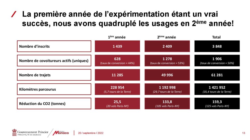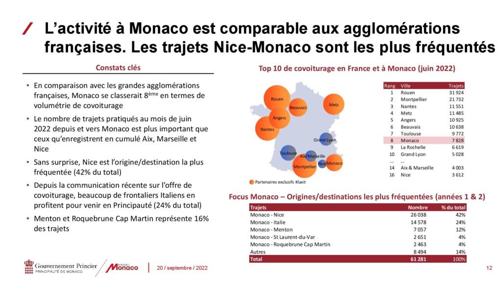 Bilancio positivo per il Principato di Monaco che, proiettato sempre di più verso la mobilità iperconnessa, si felicita per i risultati ottenuti in termini di acquisto e l’uso di mezzi alternativi a veicoli tradizionali (elettrici o ibridi, principalmente) ma, soprattutto all’impiego di app – una in particolare, Klaxit – accettate e promosse dal Governo di Monaco. Lo scenario proposto viene comunicato in occasione della presentazione del bilancio e delle prospettive organizzato il 20 settembre in mattinata, attraverso gli interventi di una entusiasta Céline CARON-DAGIONI, Consigliere del Governo – Ministro dei Lavori Pubblici, dell’Ambiente e dell’Urbanistica; a cui ha fatto eco Julien DEJANOVIC, Direttore dei Servizi Digitali e Séverine CANIS-FROIDEFOND, Direttore di Previsione, Pianificazione urbana e Mobilità. All’appuntamento, a cui hanno partecipato alcune testate locali, erano presenti anche alcuni rappresentanti di entità di Monaco che, partner di Klaxit e firmatarie del Patto Nazionale per la Transizione Energetica, hanno fornito la loro testimonianza sull’impiego del carpooling all’interno delle loro aziende.