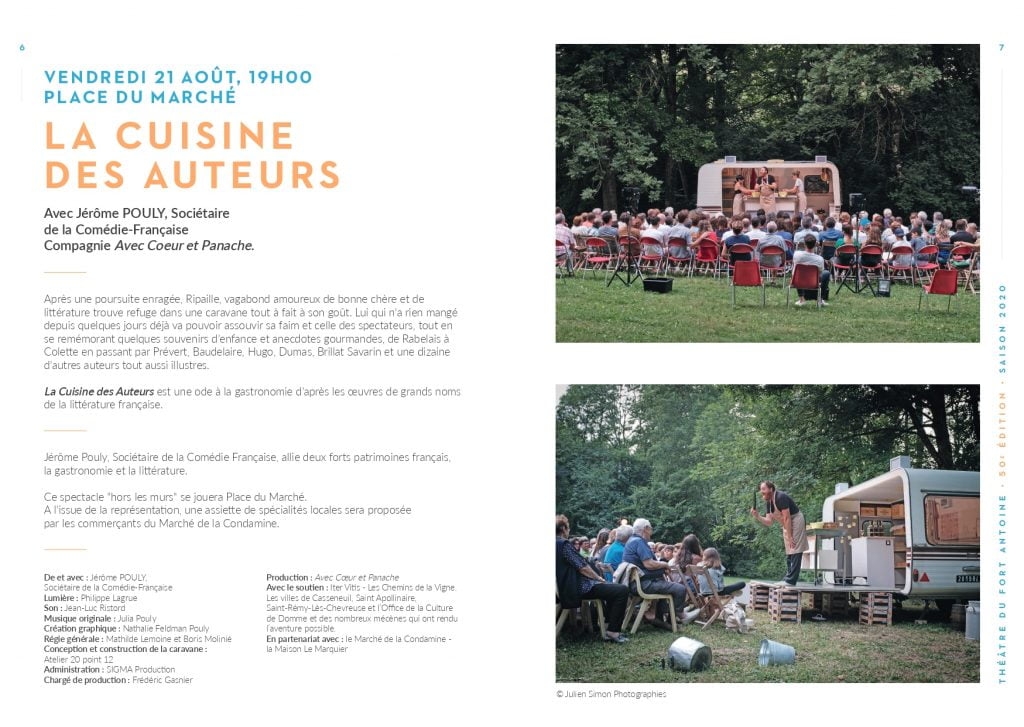 Eccezionalmente coinvolta per una volta, come location, anche la piazza del mercato della Condamine, nel cuore del Principato di Monaco, il prossimo appuntamento è previsto venerdì 21 agosto alle 19:00. Ed infatti proprio su questo insolito palco che ha luogo lo spettacolo “La cuisine des auteurs” con Jérome Pouly, attore protagonista e membro della Comédie-Française. L’originalità dello show, anticipano gli organizzatori, è quello di combinare simultaneamente sia la gastronomia e letteratura. Infatti la commedia è un goloso antipasto che precede la degustazione di specialità locali proposte dai commercianti del mercato coperto di Monaco, nel pieno centro di Monaco. Ricordiamo che, data la limitata disponibilità dei posti rigorosamente gratuiti, è necessario prenotare cliccando qui. Per ritirare il proprio ticket, invece, bisogna recarsi al Théâtre Princesse Grace di Monaco, sita al 12 di avenue d’Ostende.