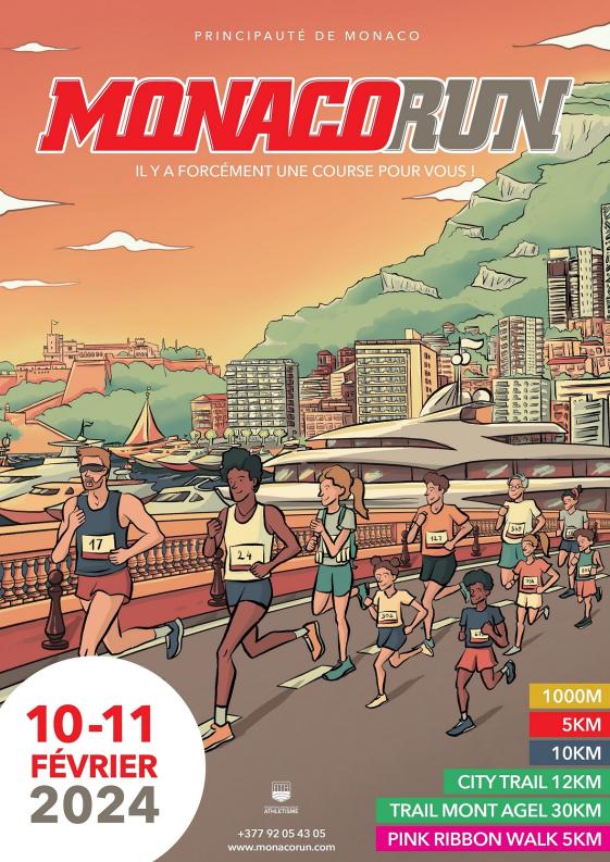 Il 10 e 11 febbraio 2024 la Monaco Run, evento destinato a quattro diverse competizioni podistiche, si prepara a conquistare il Principato a partire dalle 8.30 di sabato mattina, con il City Trail di 12 km e del Trail du Mont Agel di 30 km, la grande novità del 2024.