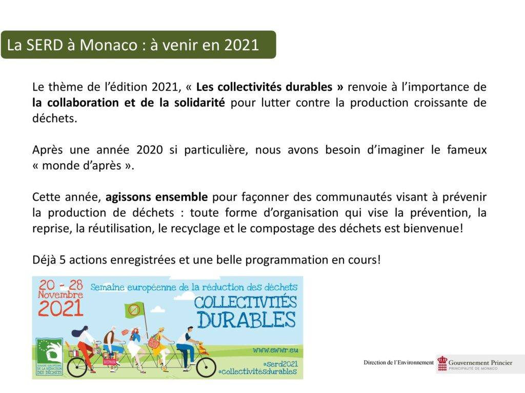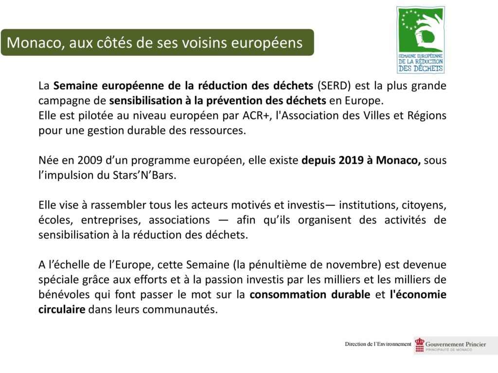 In attesa delle prossime attività previste nell’ambito della Settimana europea per la riduzione dei rifiuti (SERD), in programma nel Principato di Monaco dal 20 al 28 novembre 2021, sono state consegnati gli attestati di partecipazioni ai protagonisti della scorsa edizione. Lo rende noto la direzione della comunicazione di Monaco con una nota stampa