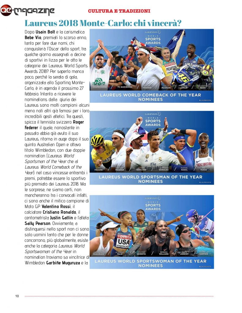 Ne abbiamo parlato nel nostro ultimo numero di QE-MAGAZINE, accessibile su https://issuu.com/ampmonaco. Nelle prossime ore, infatti, sul palco dello Sporting Monte-Carlo si celebrano i valori dello sport con i suoi protagonisti, i campioni e gli atleti che meglio rappresentano l’eccellenza delle maggiori discipline conosciute nel mondo, selezionati per ricevere gli Oscar dello sport. Tutti sintonizzati sui social seguendo #laureus18, mi raccomando…