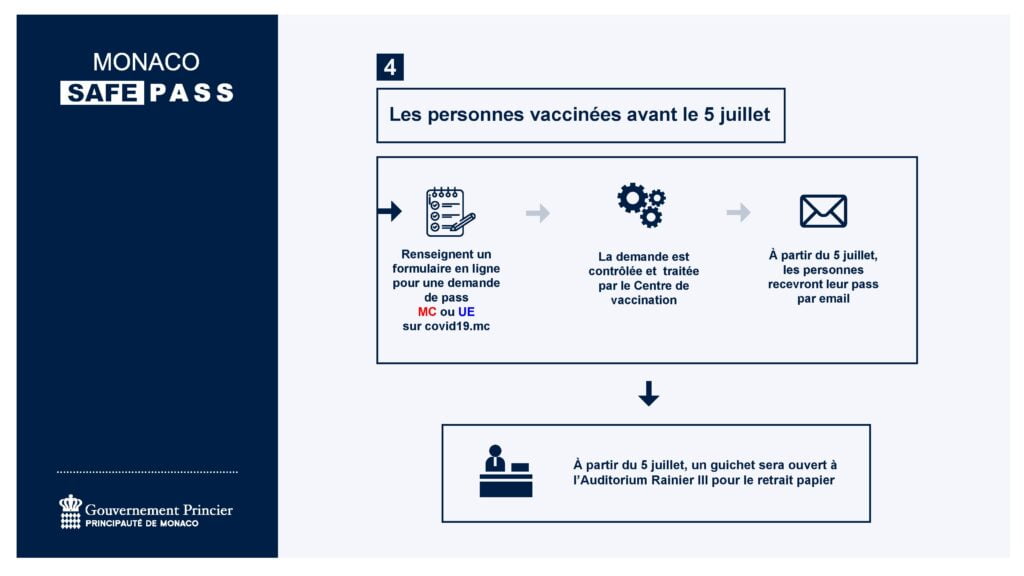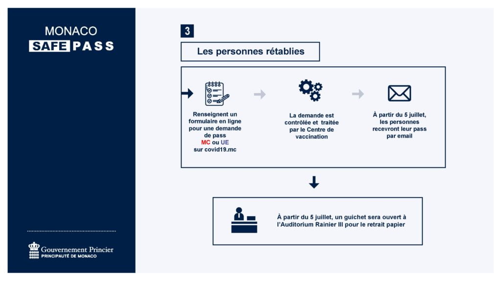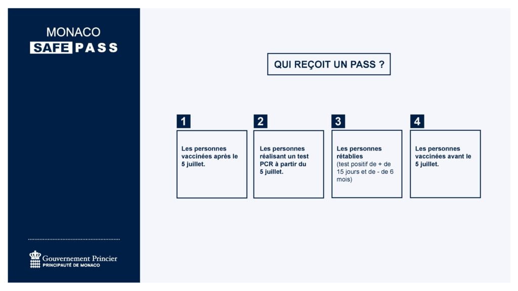 Come annunciato alcune settimane fa, anche il Principato di Monaco avrebbe dovuto adeguarsi alle normative dell’Unione Europea che prevede, per la libera circolazione delle persone ai tempi del coronavirus, il possesso di un Pass sanitario a partire da 30 giugno prossimo. Ed in effetti, i residenti monegaschi – non solo i suoi cittadini – potranno dotarsi di due documenti, uno valido solo per Monaco e la Francia, l’altro uguale al Pass europeo, a seconda degli usi prescritti dal Governo dei Grimaldi