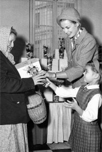 6 – REMISE DE COLIS LORS DE LA FETE NATIONALE- LA PRINCESSE GRACE REMETTANT UN COLIS AVEC LA PRINCESSE CAROLINE_1961 (2)