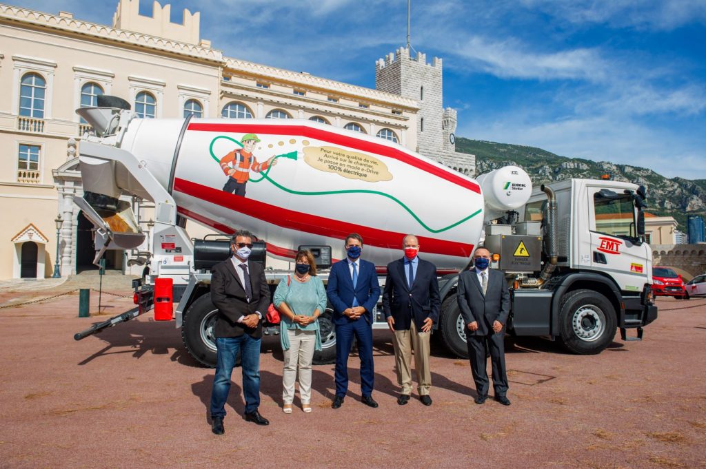 Questa scena insolita ha naturalmente attirato l’attenzione dei turisti presenti sulla Piazza, accorsi per assistere, al cambio della guardia programmata, come ogni mattina, alle 11h55. Dal punto di vista tecnologico il veicolo, come gli organizzatori hanno fatto notare, è particolarmente silenzioso, ed è nato dalla partnership di diverse società: Ecotrans, il trasportatore; Scania, il produttore di autocarri; Romano Energy e il gruppo Avril, importatore e produttore del biocarburante B100; Schwing Stetter, il produttore della betoniera; Wierda Hybrid Technologies, l’azienda olandese specializzata in attrezzature elettriche ibride per autocarri; e EMT, produttore di calcestruzzo preconfezionato e in particolare di calcestruzzo a basso tenore di carbonio. (Foto: copyright Palais Princier/Axel Bastello)