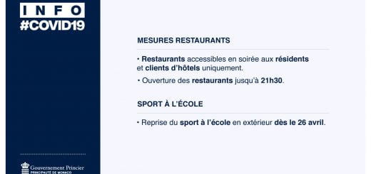 Il testo del comunicato stampa fornito dal governo di Monaco termina indicando che l’analisi continua della situazione sanitaria è resa necessaria al fine di adattare il sistema attuale alle nuove evidenze. Tuttavia ‘sta lavorando su potenziali allentamenti che potrebbero essere implementati nel prossimo futuro a seconda degli indicatori di salute. Nei prossimi giorni sono previste nuove consultazioni.’ Per essere aggiornati su tutte le misure in vigore nel Principato di Monaco, da conoscere sia come turisti che come residenti cliccare qui