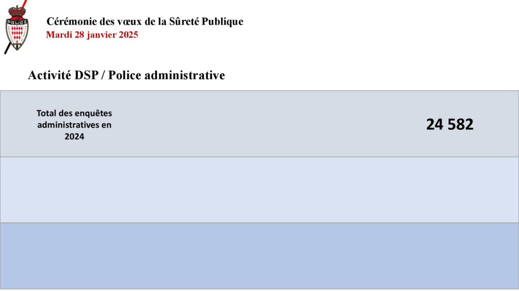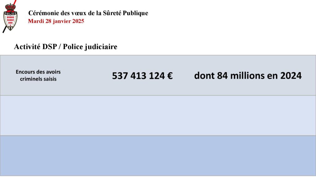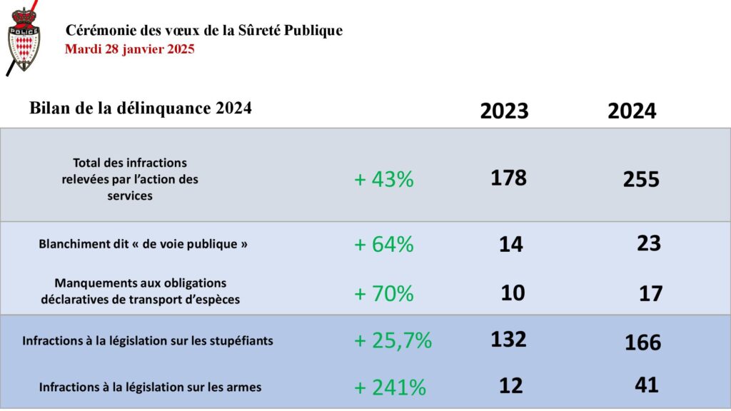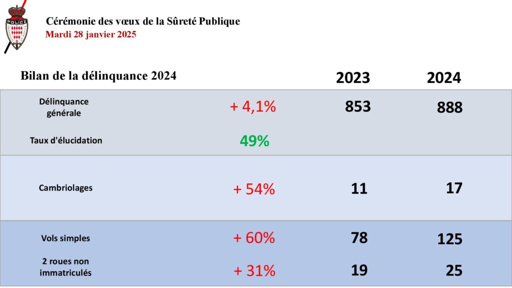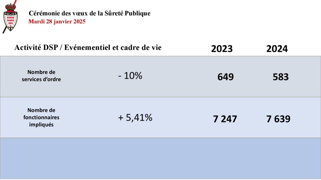 Inoltre, sempre nel corso della cerimonia a cui hanno presieduto Consigliere del Governo – Ministro degli Interni, Lionel BEFFRE, le massime autorità monegasche ed il Sovrano, SAS il Principe Alberto II di Monaco, Arella ha manifestato la sua volontà di migliorare la “ capacità di iniziativa” per concentrarsi su 5 punti principali che sono, in sintesi: mantenere lo stretto legame tra la polizia e il pubblico, ossia cittadini, residenti e turisti in genere; proporre un piano per migliorare la sicurezza stradale; rafforzare le misure di prevenzione in prossimità delle scuole; migliorare le condizioni di accoglienza dei residenti; e proporre incentivi per impiegare più persone in polizia e sviluppare le loro carriere, benché al momento sono 620, tra uomini e donne, in carica presso la Direzione della Pubblica Sicurezza di Monaco. Infine, Arella ha passato in rassegna i punti salienti del 2024 e ha discusso le statistiche focalizzandosi sul fatto che la criminalità, che rimane in gran parte sotto controllo nel Principato, ma anche le aree di miglioramento che intende implementare nei prossimi mesi.