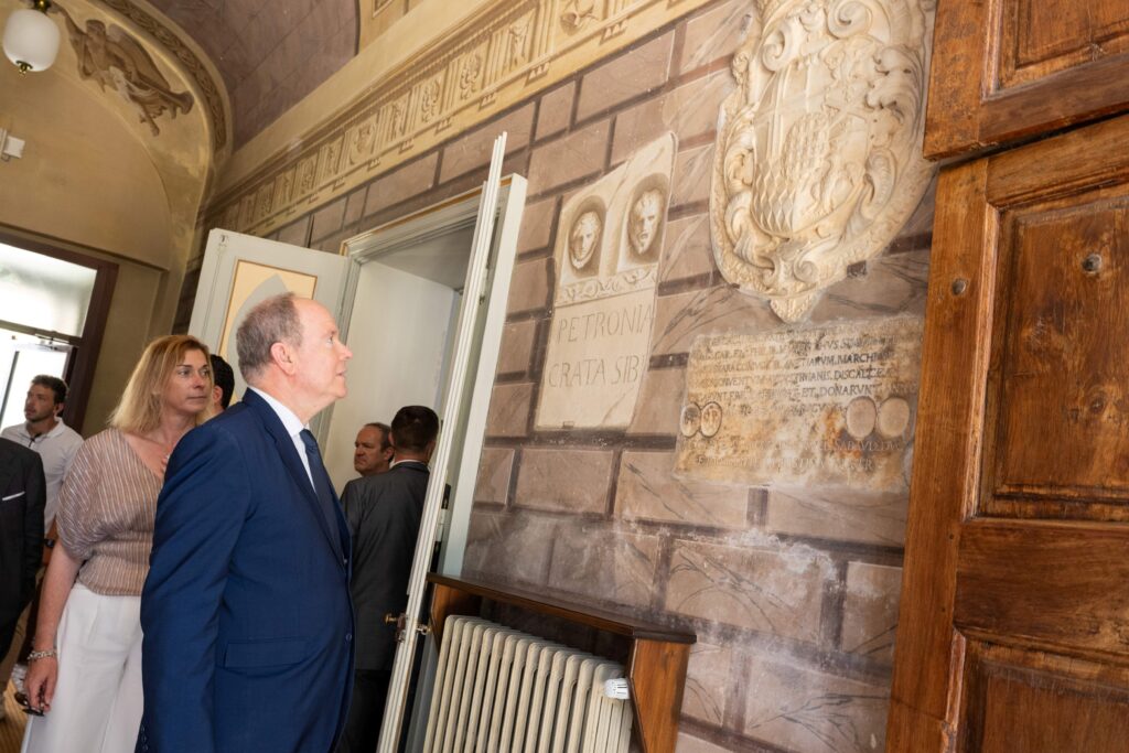 Operazione complessa quella che per due giorni vede implicato personalmente il Sovrano di Monaco, in missione in Piemonte e Liguria per ripercorrere le tracce lasciate dai suoi antenati. Il programma, particolarmente intenso, rientra nelll’ambito delle Sue visite periodiche ai territori storicamente legati alla famiglia Grimaldi e affiliati, se consideriamo che il 26 giugno il comune di Pianezza (TO), ha svelato la placca “Siti storici Grimaldi di Monaco” poiché, come Livorno Ferraris, questi due paesi erano gli antichi possedimenti del marchese Giovan Battista Simiana di Albigny che, nel 1659, sposò Jeanne-Marie Grimaldi, nipote del Principe Onorato II di Monaco e sorella del Principe Luigi I. In entrambi i Comuni, dopo aver apposto la targa commemorativa, il Principe ha ricevuto la cittadinanza onoraria dopo aver visitato i luoghi più rappresentativi di paesi. Come il monastero di Pieve di San Pietro, risalente all’XI secolo, Villa Lascaris, costruita sull’antico sito del castello di Pianezza, edificato nell’anno 1000 dai vescovi di Torino; oppure, a Livorno Ferraris (VC) il Museo Ferraris e Museo Archeologico. Nella serata del 26 giugno il Principe di Monaco è stato poi accolto a Palazzo Tursi dal Sindaco di Genova, Marco Bucarelli e, nel corso di una cerimonia ufficiale, ha ricevuto il Premio Paganini in qualità di Ambasciatore di questo famoso concorso violinistico, creato nel 1954, e considerato tra i più importanti concorsi violinistici del mondo Ha poi partecipato, con la sua delegazione, a una cena di gala a favore della Fondazione Principe Alberto II (FPA2). Il giorno seguente, ossia martedì 27 giugno, il Principe di Monaco è invitato a visitare Rocca Grimalda (AL), un piccolo comune in provincia di Alessandria, in Piemonte. Acquistato nel XVI secolo da un ramo della famiglia Grimaldi di Genova, il comune e il suo castello rimasero di loro proprietà per 250 anni. Accompagnato dal sindaco, Enzo Cacciola, il Principe presiede allo svelamento del (terzo in due giorni, ndr) cartello che indica l’appartenenza del sito alla rete dei “Siti storici Grimaldi di Monaco” e la relativa targa commemorativa che attesta la sua visita, oltre che la cittadinanza onoraria.