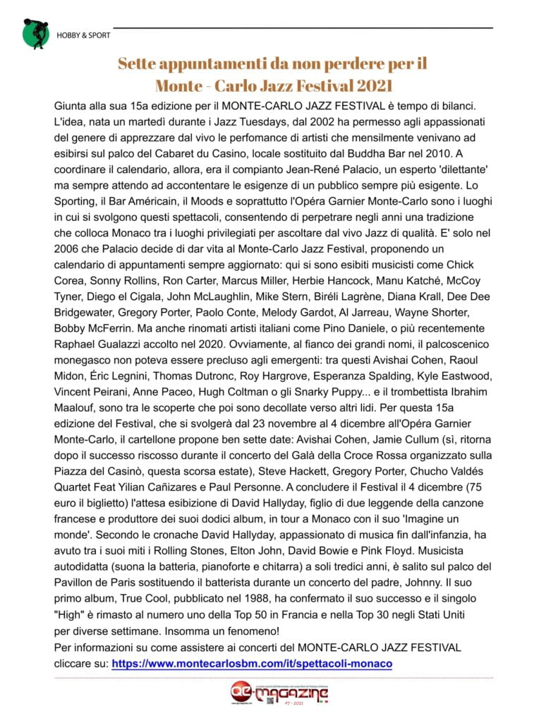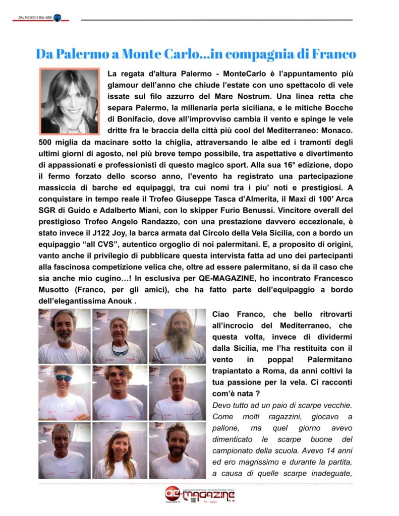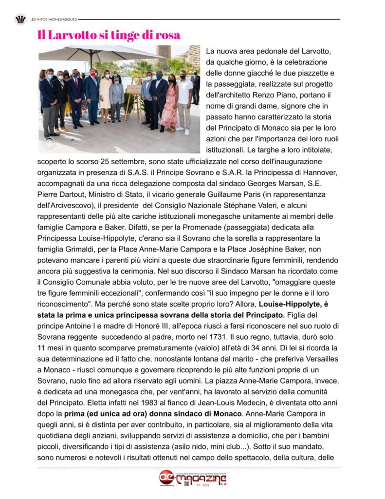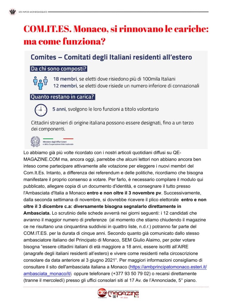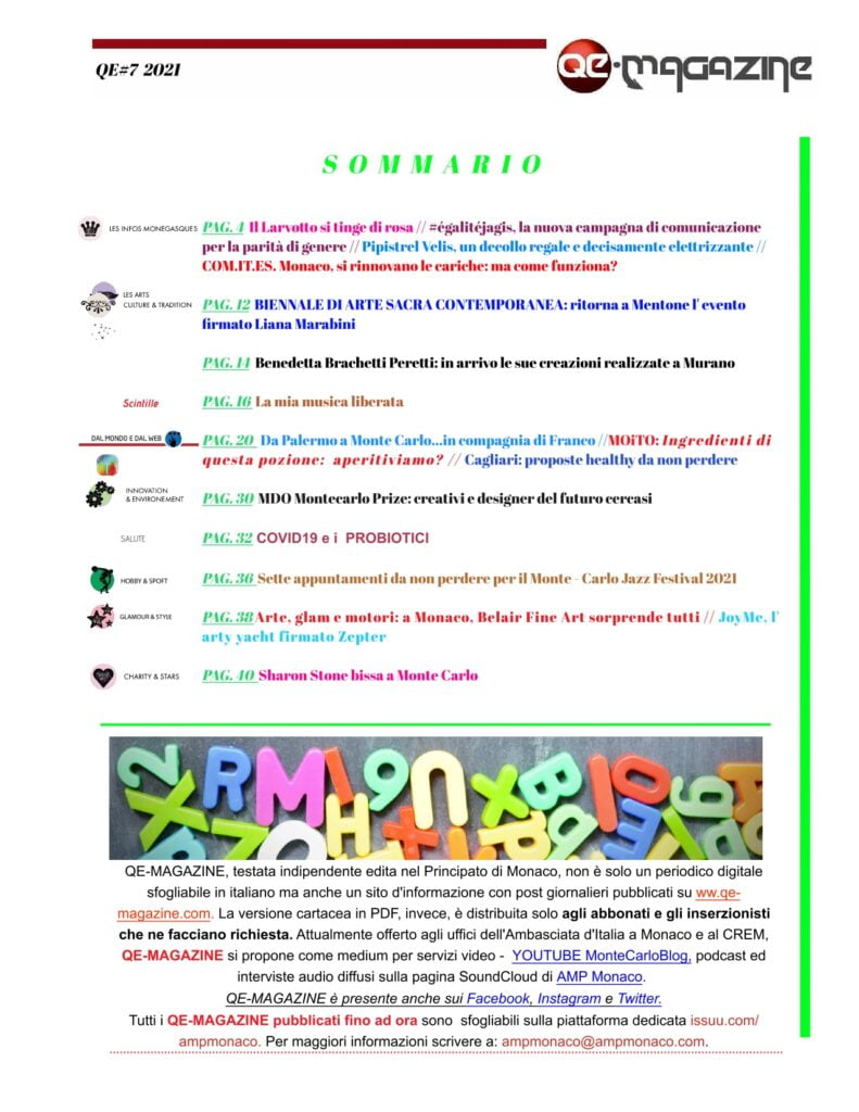 QE-MAGAZINE è il primo ed unico settimanale – ed ora mensile – digitale in italiano del Principato di Monaco Facebook, Instagram e Twitter) che propone anche una versione stampabile del magazine digitale ESCLUSIVAMENTE agli abbonati che ne facciano richiesta. Da seguire anche i video del canale YOUTUBE MonteCarloBlog – QE MAGAZINE #7 OTTOBRE 2021