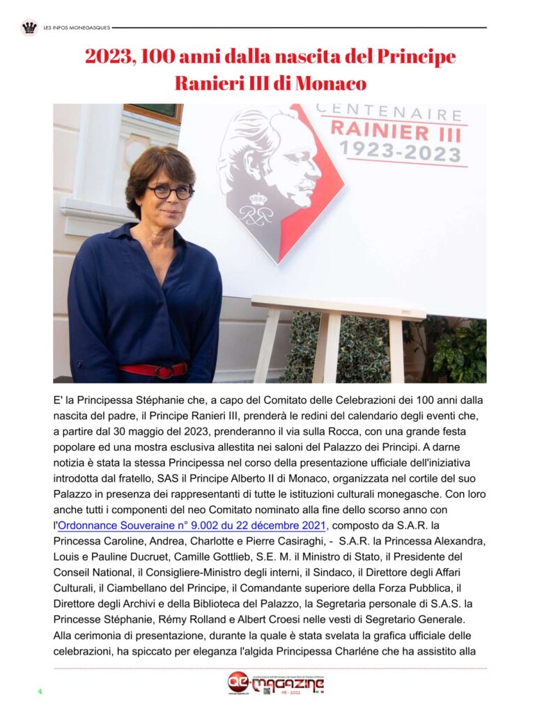QE-MAGAZINE è il primo ed unico periodico – ora mensile – digitale in italiano del Principato di Monaco (Facebook, Instagram e Twitter) che propone anche una versione stampabile del magazine digitale ESCLUSIVAMENTE agli abbonati che ne facciano richiesta. Seguiteci anche su nostro canale YOUTUBE MonteCarloBlog e anche sul nostro canale Telegram Monaco Pocket