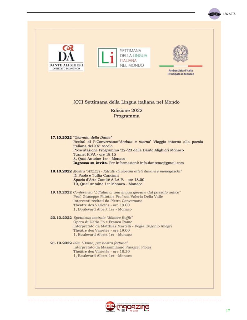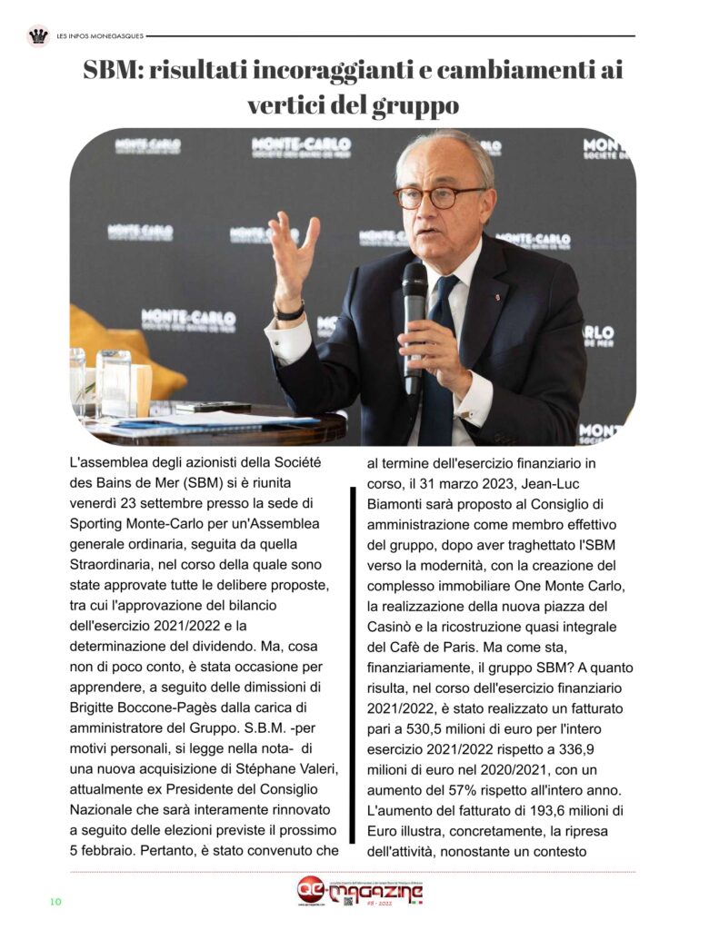 Chi ci segue giornalmente ha visto che, quotidianamente, abbiamo scritto articoli comunicando costantemente le novità principali provenienti dal Principato di Monaco e dintorni. A partire dall’appena terminato Monaco Yacht Show, e a seguire il Luxe Pack, devo ammettere però che non è stato facile confezionare questo numero. Il rincorrere gli eventi, seguire nuovi progetti e dare continuità alla nostra linea editoriale improntata principalmente sui fatti che si svolgono a Monaco, con un occhio di riguardo agli eventi del torinese (con MOiTO) non è stato facile, lo ammetto. E non sarà sicuramente meno impegnativo il programma presentato per i mesi avvenire da Chantal Ravera, presidente dell’associazione Femmes Leaders Mondiales Monaco (FLLM) che conta quasi 190 associate. In calendario, tanti progetti ed il primo che debutta ad ottobre è la campagna di comunicazione sulla prevenzione delle malattie cardiache, a cui seguirà, il 22 di questo mese, la seconda edizione dell’ Operazione LES GESTES DE VIE, animata dalla cardiologa Cecilia Marcacci. Inoltre, tra le novità, sempre la FLLM sponsorizzerà l’EQUIPE FEMININE MONEGASQUE DE SQUASH per la stagione 2022/2023. Tutto questo accade nel mese ‘rosa’ per eccellenza…sarà mica un caso? ULTIMO MINUTO: dopo qualche minuto dalla chiusura del magazine #8, il Consiglio Nazionale di Monaco ha inviato un comunicato che pubblichiamo integralmente. Buona lettura…