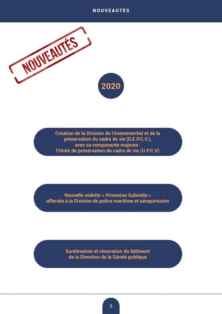 Richard Marangoni si è poi soffermato anche sugli sviluppi che si sono verificati l’anno scorso in relazione all’avvio del “Piano di sicurezza pubblica 2020“. A tal proposito ha menzionato la creazione dell‘Unità per la conservazione dell’ambiente di vita (UPCV); l’arrivo della vedetta marina “Principessa Gabriella”; ma anche l’innalzamento e la ristrutturazione dei locali della Direzione della Sicurezza pubblica. Infine, Marangoni ha reso omaggio alle 88 donne in servizio attivo, due delle quali hanno assunto posizioni di responsabilità, e ha espresso la sua gratitudine a tutto il personale per la realizzazione delle delicate missioni svolte negli ultimi mesi nel Principato di Monaco. Infine, tra le iniziative indicate per il 2021, la creazione dell’Unità Drone e della lotta anti-droni (non autorizzati); nuova riorganizzazione e ottimizzazione dell’occupazione degli agenti sul suolo pubblico; l’Attività ricentrata sulle missioni di riferimento per la Divisione della polizia amministrativa; Unione della sezione dei minori alla Divisione di Polizia Giudiziaria; Aumento del personale nella Sezione di Investigazione Finanziaria; lancio del sito omonimo e la creazione di nuovi comitati nell’ambito del piano ‘Monaco, a safe city’; Mantenere la priorità: prendersi cura delle persone vulnerabili.