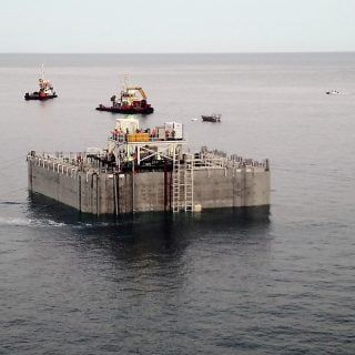 Da 2 giorni è stato installato il 7 cassone in cemento armato che compone la cintura semi-galleggiante ideata per delimitare...