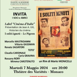 Organizzata dall’Institut Audiovisuel di Monaco in partenariato con l’Associazione Dante Alighieri, la proiezione del film I Soliti Ignoti (Le Pigeon),...