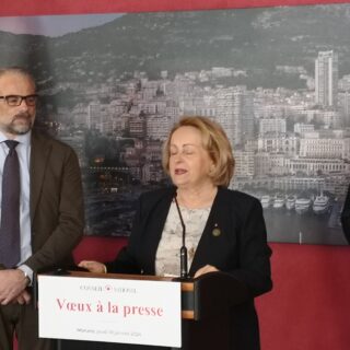 Ai giornalisti e rappresentanti della stampa di Monaco, invitati per i consueti auguri di inizio anno, Brigitte Boccone-Pagès, Présidente du...